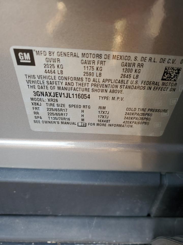 Колір СірийЦиліндри 4VIN 3GNAXJEV1JL116054Стан Заводиться та їде (перевірено)Ушкодження Передня або задняДата аукціону 2025-12-08 AutoRIA