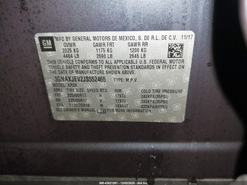 2018 CHEVROLET EQUINOX 2018 року Бензин, 1.5, Передній привід, vin - 3GNAXJEV2JS552465 з США