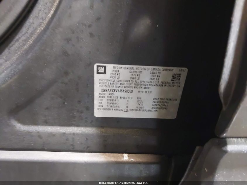 2018 CHEVROLET EQUINOX 2018 року Бензин, 1.5, Повний привід, vin - 2GNAXSEV1J6190309 з США
