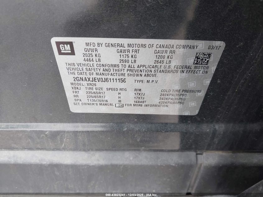 2018 CHEVROLET EQUINOX 2018 року Бензин, 1.5, Передній привід, vin - 2GNAXJEV0J6111156 з США