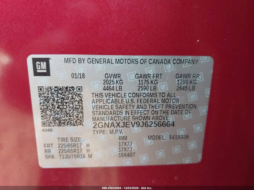 Колір ЧервонийЦиліндри 4Привід Передній привідVIN 2GNAXJEV9J6256664Стан Заводиться та їде (перевірено)Ушкодження Передня і задня AutoRIA