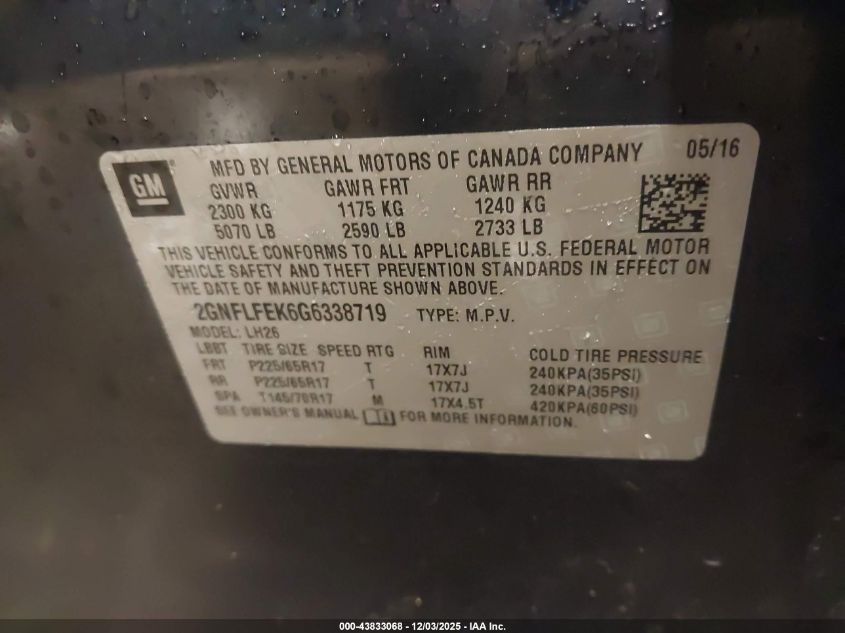2016 CHEVROLET EQUINOX 2016 року Бензин, 2.4, Повний привід, vin - 2GNFLFEK6G6338719 з США