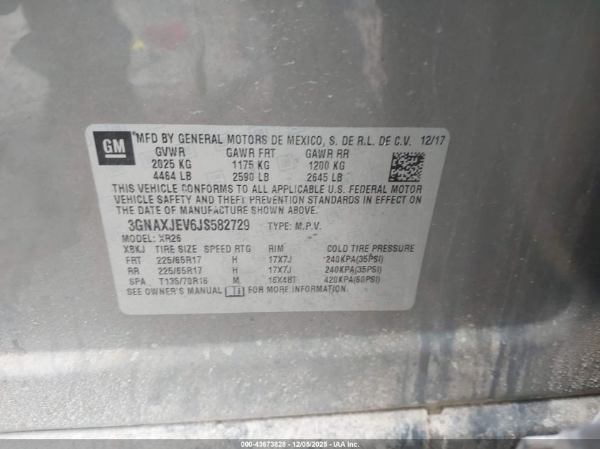 2018 CHEVROLET EQUINOX 2018 року Бензин, 1.5, Передній привід, vin - 3GNAXJEV6JS582729 з США