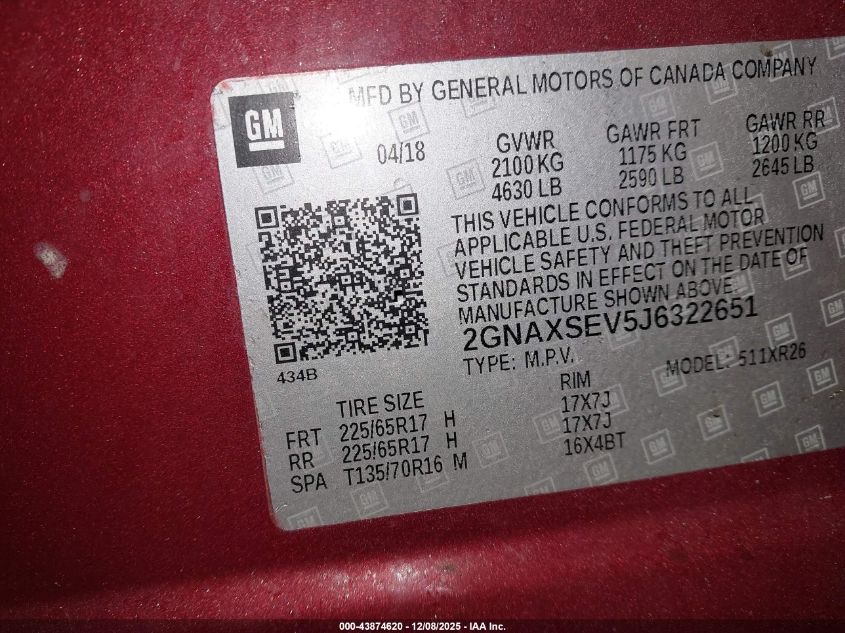 Колір ЧервонийЦиліндри 4Привід Повний привідVIN 2GNAXSEV5J6322651Стан Заводиться та їде (перевірено)Ушкодження Передня або задня AutoRIA