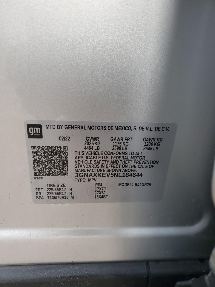 2022 CHEVROLET EQUINOX 2022 року Бензин, 1.5, , vin - 3GNAXKEV5NL184644 з США