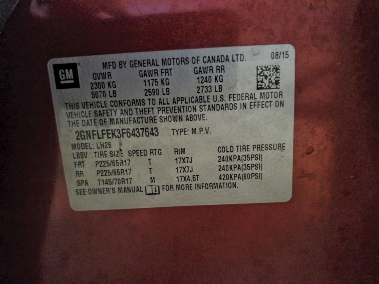 2015 CHEVROLET EQUINOX 2015 року Бензин, 2.4, Повний привід, vin - 2GNFLFEK3F6437643 з США