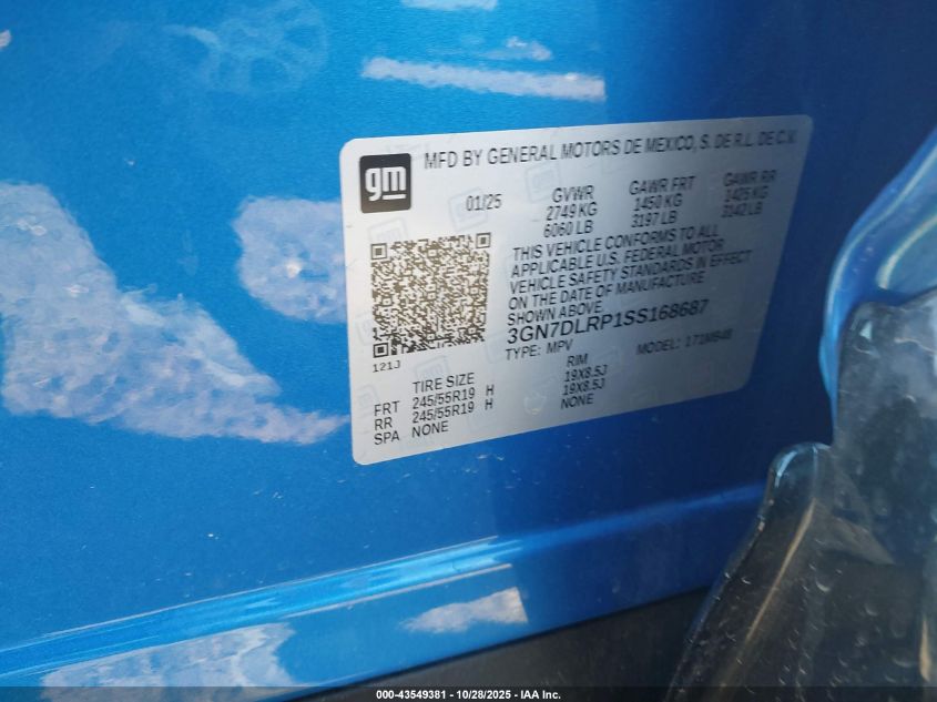 2025 CHEVROLET EQUINOX 2025 року Електричний, 0.0, Передній привід, vin - 3GN7DLRP1SS168687 з США