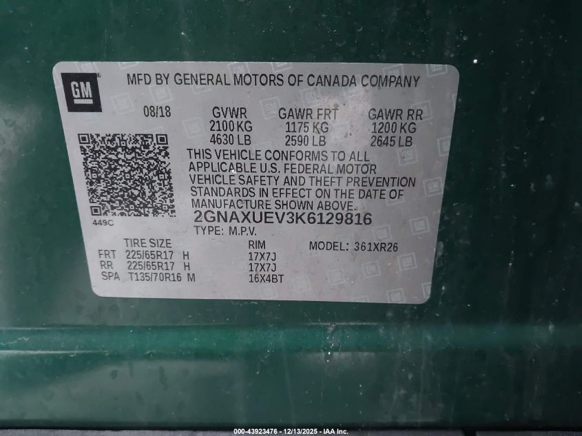 2019 CHEVROLET EQUINOX 2019 року Бензин, 1.5, Повний привід, vin - 2GNAXUEV3K6129816 з США