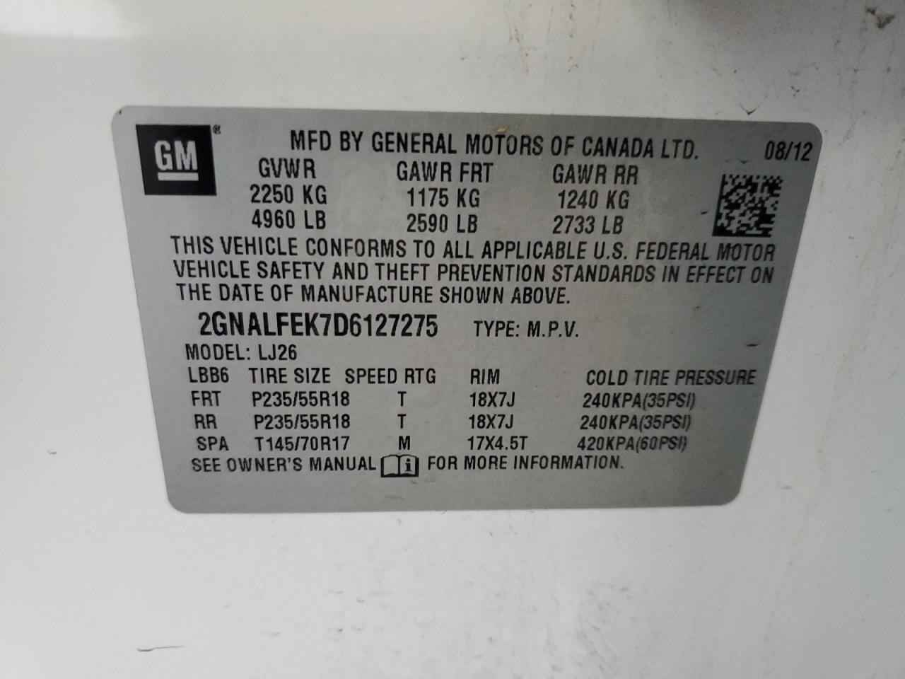 Колір БілийЦиліндри 4VIN 2GNALFEK7D6127275Стан НевідомоУшкодження Механічні пошкодженняДата аукціону 2025-12-12 AutoRIA