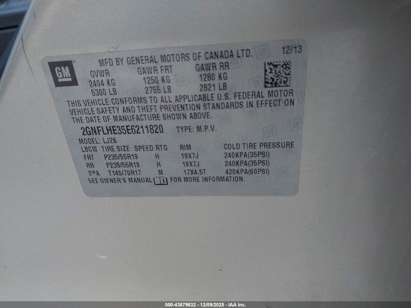 Колір СрібнийЦиліндри 6Привід Повний привідVIN 2GNFLHE35E6211820Стан Заводиться та їде (перевірено)Ушкодження Передня або задня AutoRIA