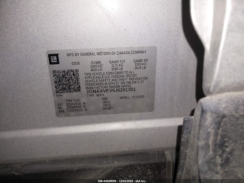 2018 CHEVROLET EQUINOX 2018 року Бензин, 1.5, Повний привід, vin - 2GNAXVEV6J6291301 з США