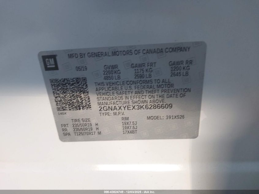 2019 CHEVROLET EQUINOX 2019 року Бензин, 2.0, Повний привід, vin - 2GNAXYEX3K6286609 з США