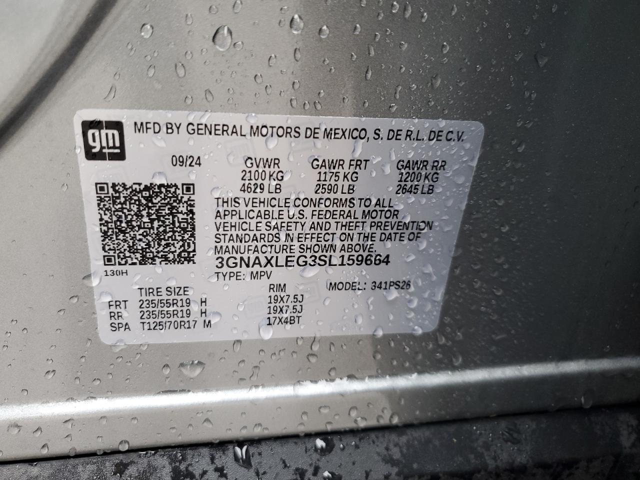 2025 CHEVROLET EQUINOX 2025 року Бензин, 1.5, , vin - 3GNAXLEG3SL159664 з США
