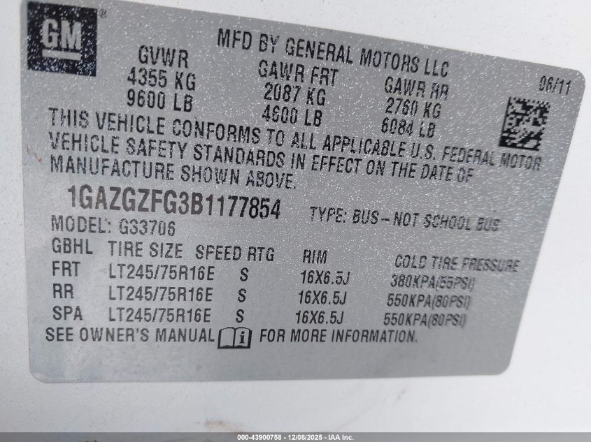 2011 CHEVROLET EXPRESS 2011 року Бензин, 6.0, Задній привід, vin - 1GAZGZFG3B1177854 з США