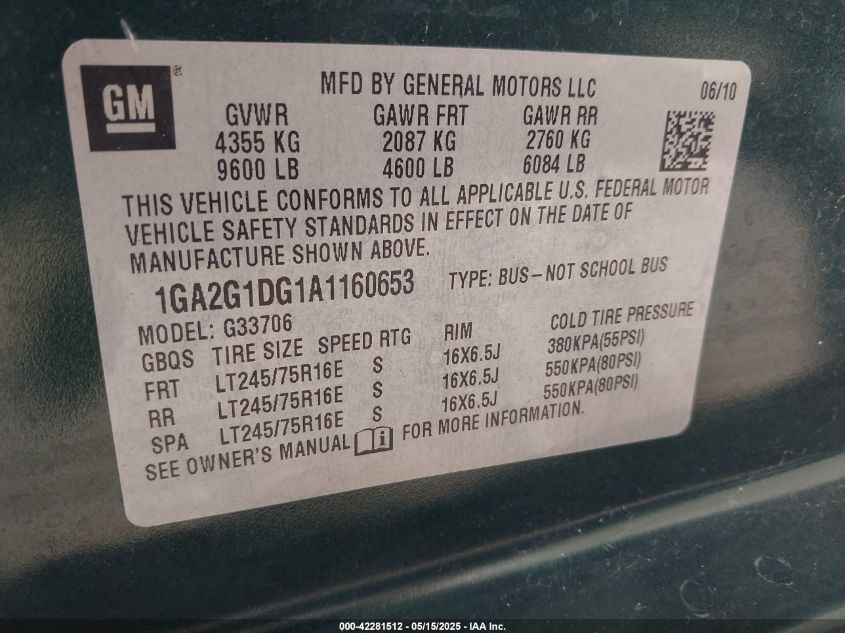 2010 CHEVROLET EXPRESS G1