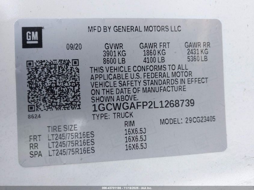 2020 CHEVROLET EXPRESS G2