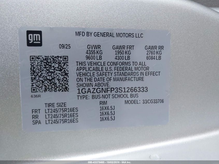 2025 CHEVROLET EXPRESS 2025 року Бензин, 4.3, Задній привід, vin - 1GAZGNFP3S1266333 з США