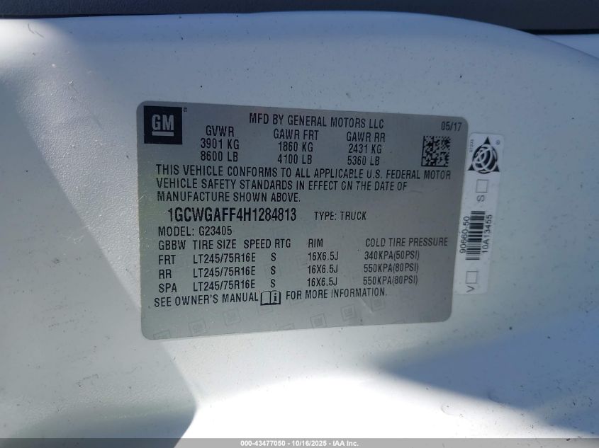 2017 CHEVROLET EXPRESS 2017 року Бензин, 4.8, Задній привід, vin - 1GCWGAFF4H1284813 з США