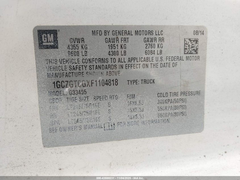 Колір БілийЦиліндри 8Привід Задній привідVIN 1GCZGTCGXF1104818Стан Заводиться та їде (перевірено)Ушкодження Передня або задня AutoRIA