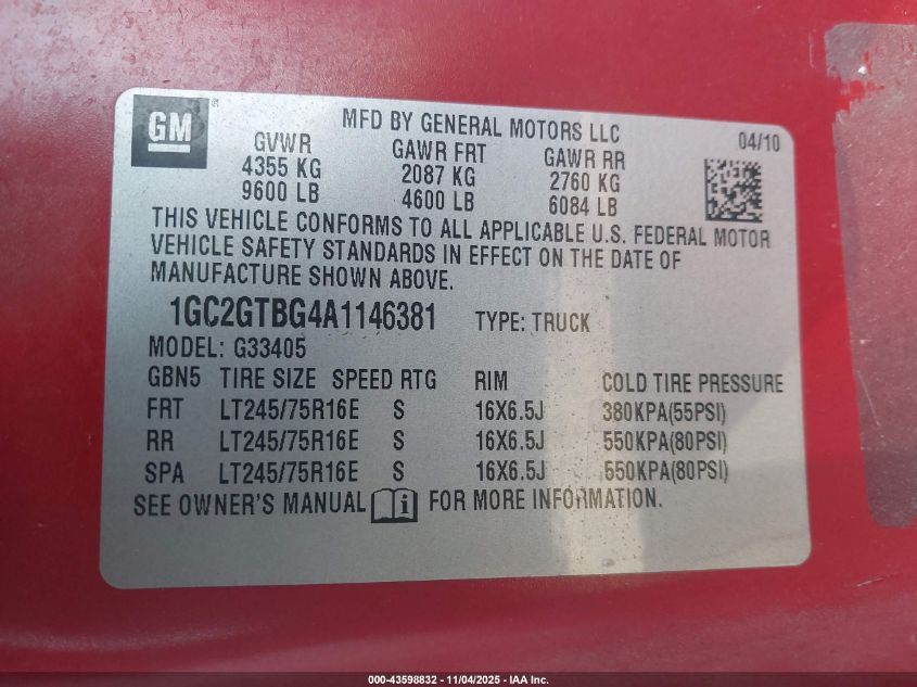 Колір ЧервонийЦиліндри 8Привід Задній привідVIN 1GC2GTBG4A1146381Стан Заводиться та їде (перевірено)Ушкодження Передня або задняДата аукціону 2025-12-09 AutoRIA