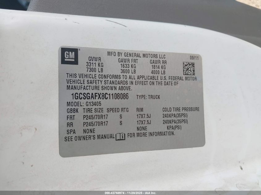 Колір БілийЦиліндри 6Привід Задній привідVIN 1GCSGAFX8C1108086Стан Заводиться та їде (перевірено)Ушкодження З боківДата аукціону 2025-12-10 AutoRIA