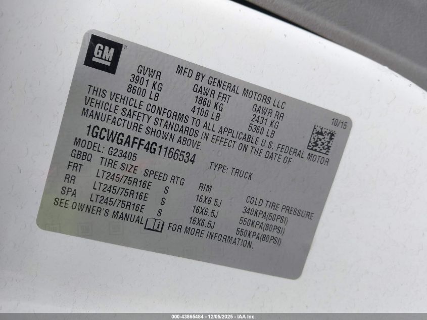2016 CHEVROLET EXPRESS G4