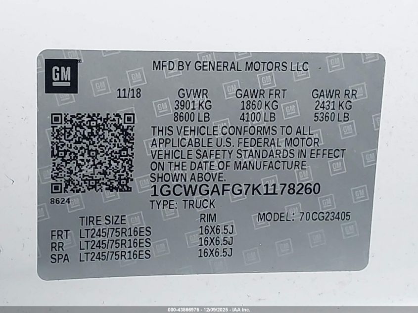 2019 CHEVROLET EXPRESS 2019 року Бензин, 6.0, Задній привід, vin - 1GCWGAFG7K1178260 з США