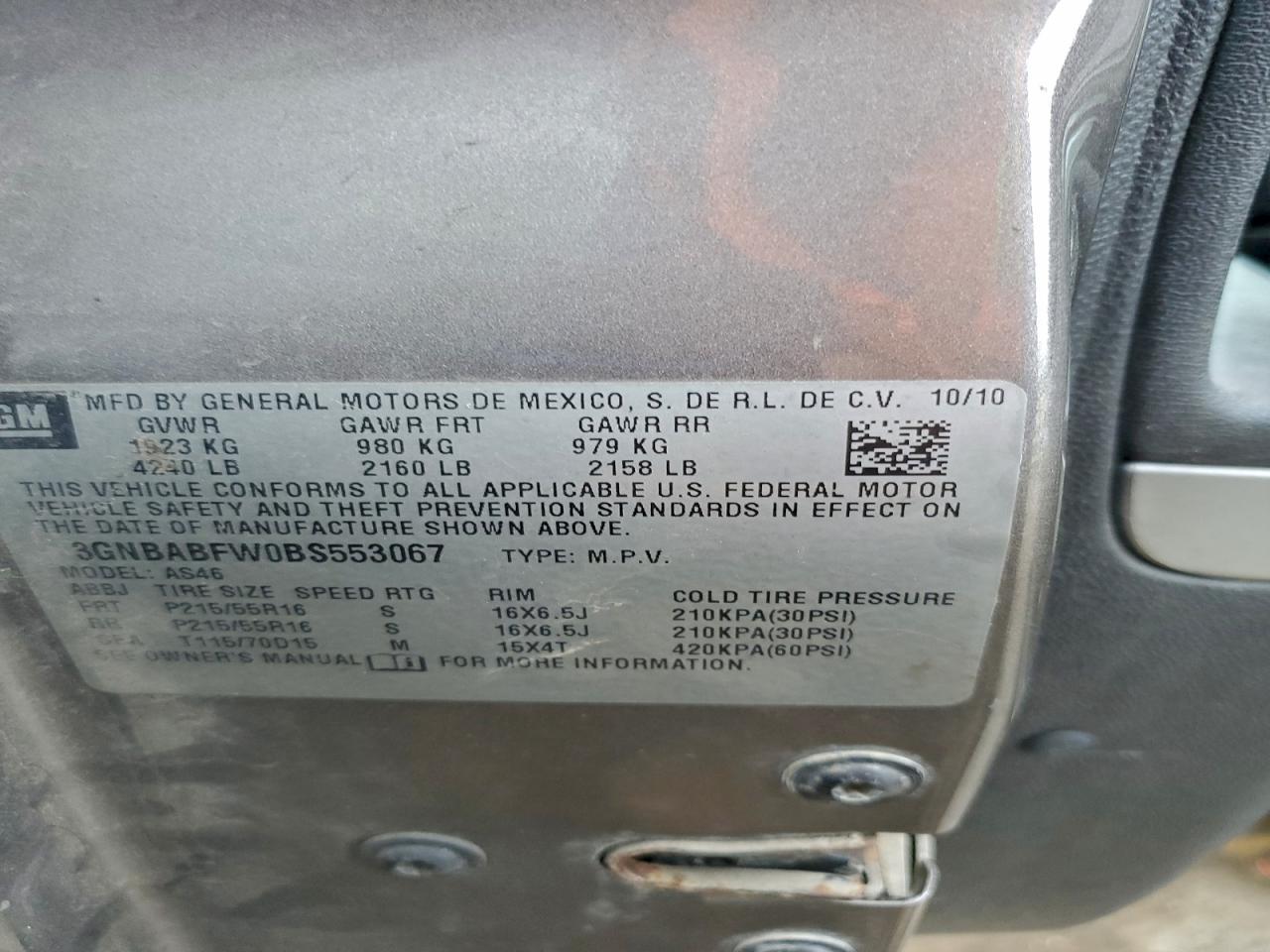 Колір ЗагарЦиліндри 4VIN 3GNBABFW0BS553067Стан Заводиться та їде (перевірено)Ушкодження Передня або задня AutoRIA