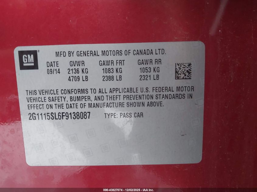 2015 CHEVROLET IMPALA 2015 року Бензин, 2.5, Передній привід, vin - 2G1115SL6F9138087 з США