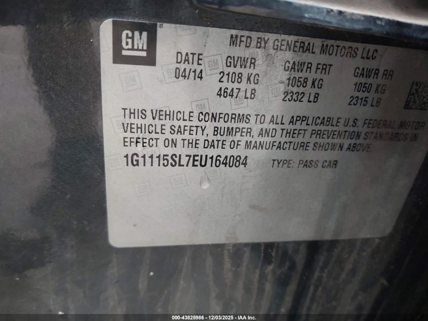 2014 CHEVROLET IMPALA 2014 року Бензин, 2.5, Передній привід, vin - 1G1115SL7EU164084 з США