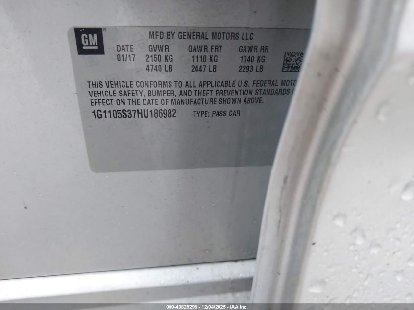 Колір СрібнийЦиліндри 6Привід Передній привідVIN 1G1105S37HU186982Стан Заводиться та їде (перевірено)Ушкодження Ліва сторона AutoRIA