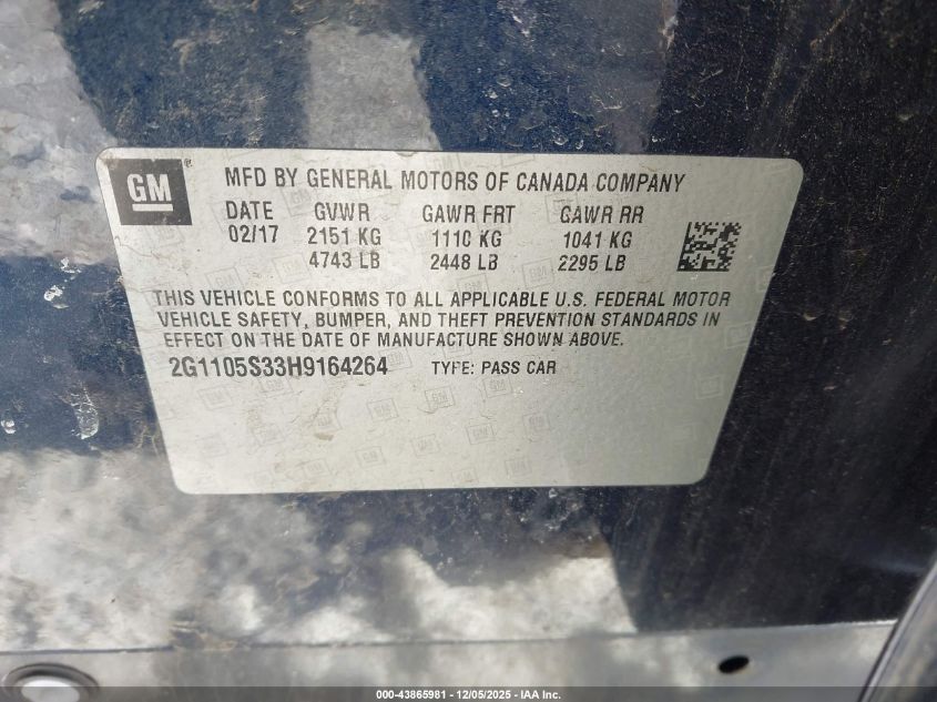 2017 CHEVROLET IMPALA 2017 року Бензин, 3.6, Передній привід, vin - 2G1105S33H9164264 з США