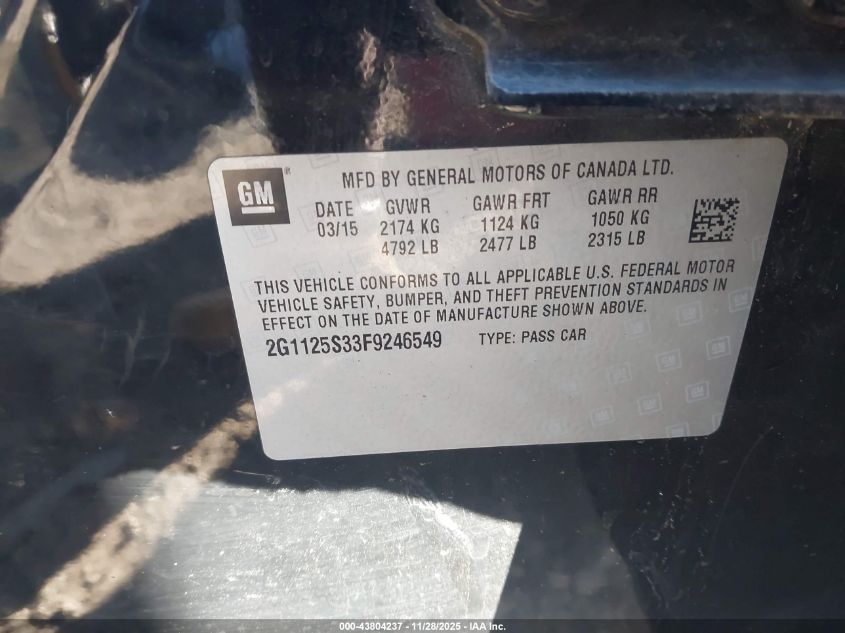 2015 CHEVROLET IMPALA 2015 року Бензин, 3.6, Передній привід, vin - 2G1125S33F9246549 з США