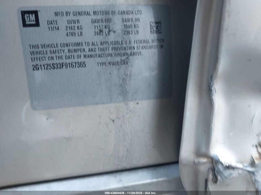 2015 CHEVROLET IMPALA 2015 року Бензин, 3.6, Передній привід, vin - 2G1125S33F9167365 з США