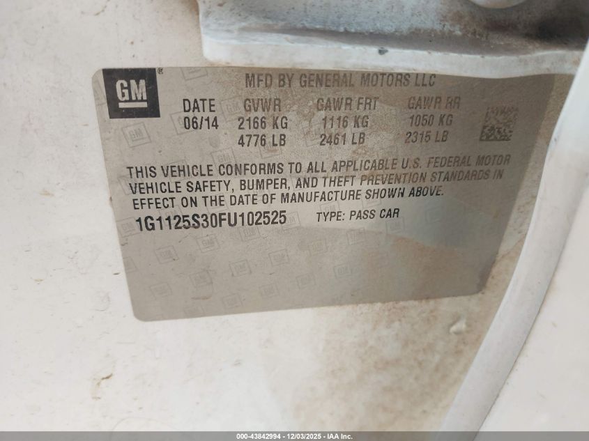 2015 CHEVROLET IMPALA 2015 року Бензин, 3.6, Передній привід, vin - 1G1125S30FU102525 з США