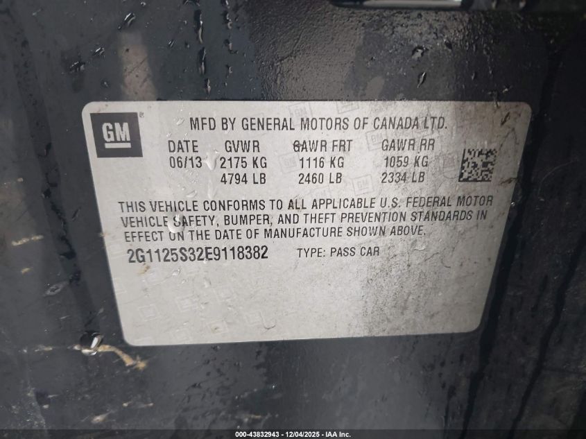 2014 CHEVROLET IMPALA 2014 року Бензин, 3.6, Передній привід, vin - 2G1125S32E9118382 з США
