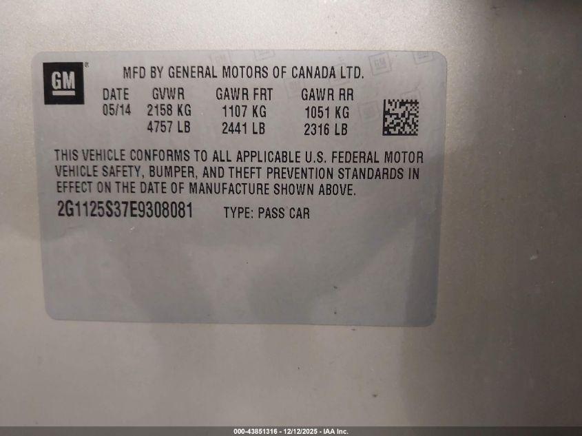 2014 CHEVROLET IMPALA 2014 року Бензин, 3.6, Передній привід, vin - 2G1125S37E9308081 з США
