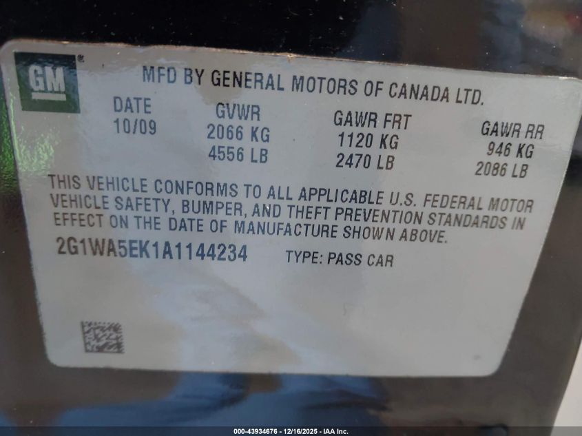 2010 CHEVROLET IMPALA 2010 року Бензин, 3.5, Передній привід, vin - 2G1WA5EK1A1144234 з США