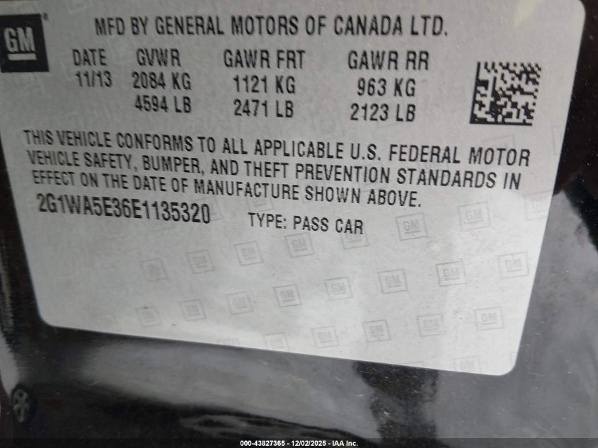 2014 CHEVROLET IMPALA 2014 року Бензин, 3.6, Передній привід, vin - 2G1WA5E36E1135320 з США