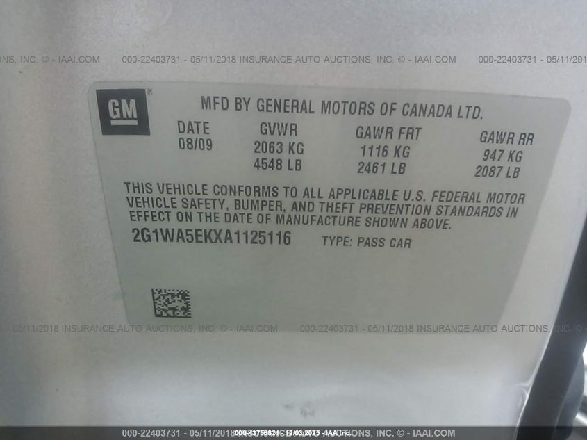 Колір СрібнийЦиліндри 6Привід Передній привідVIN 2G1WA5EKXA1125116Стан СтаціонарноУшкодження Ліва сторона