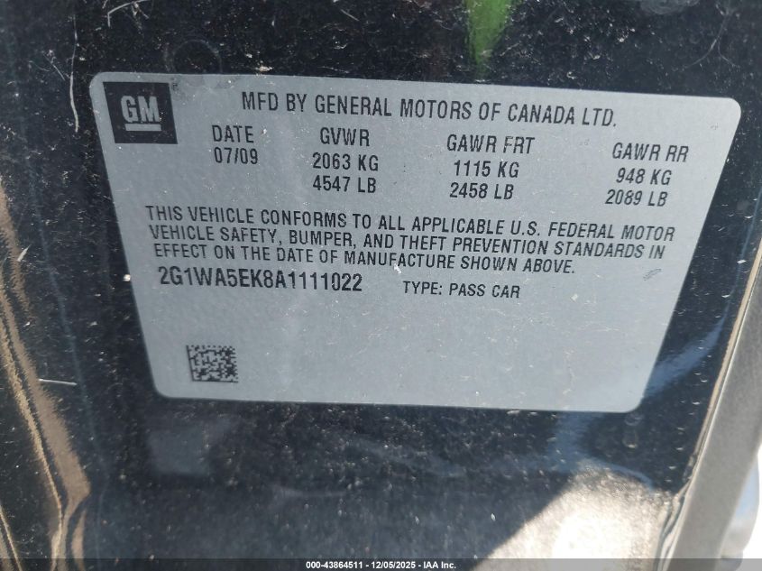 Колір ЧорнийЦиліндри 6Привід Передній привідVIN 2G1WA5EK8A1111022Стан Заводиться та їде (перевірено)Ушкодження Передня ліва