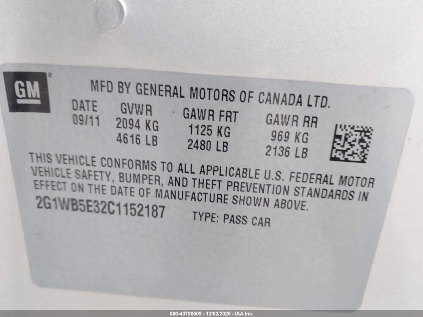 2012 CHEVROLET IMPALA 2012 року Бензин, 3.6, Передній привід, vin - 2G1WB5E32C1152187 з США