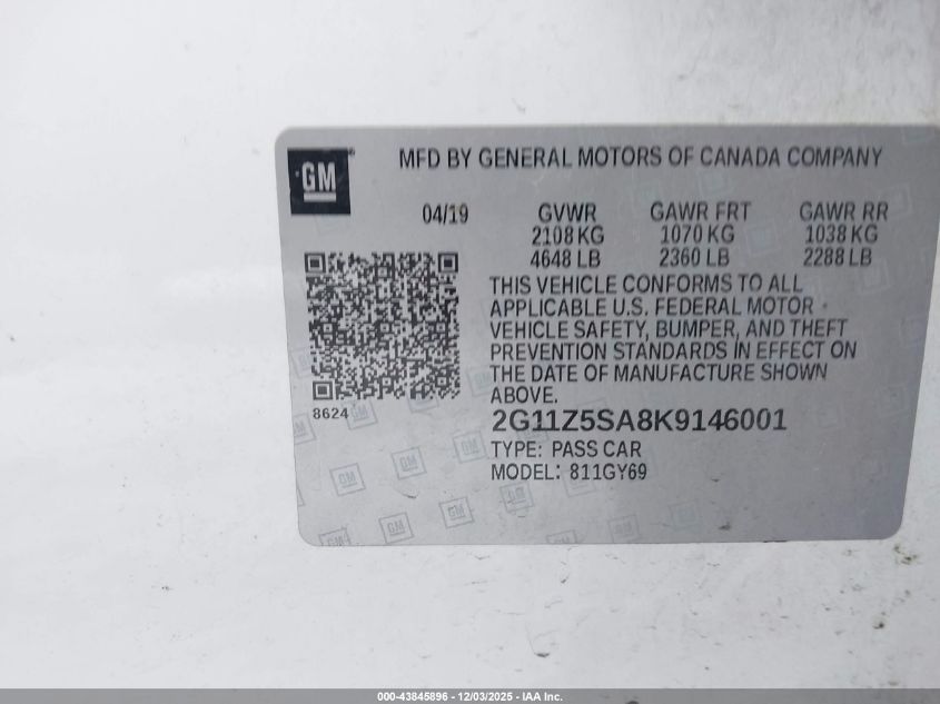 2019 CHEVROLET IMPALA 2019 року Бензин, 2.5, Передній привід, vin - 2G11Z5SA8K9146001 з США