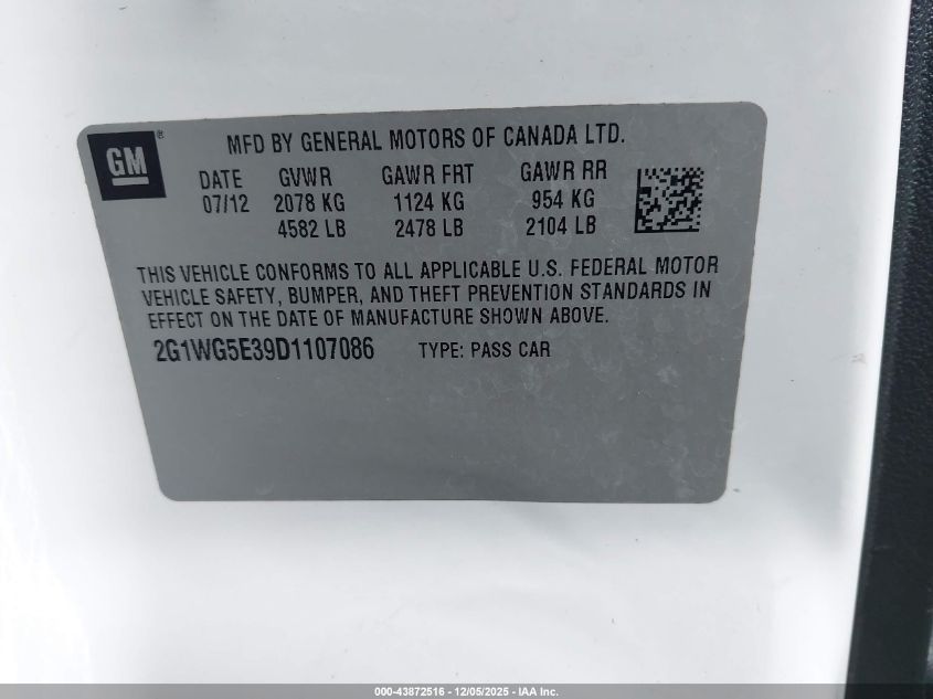 2013 CHEVROLET IMPALA 2013 року Бензин, 3.6, Передній привід, vin - 2G1WG5E39D1107086 з США