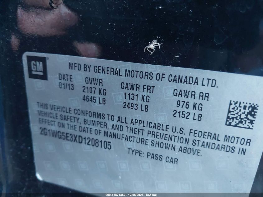 2013 CHEVROLET IMPALA 2013 року Бензин, 3.6, Передній привід, vin - 2G1WG5E3XD1208105 з США
