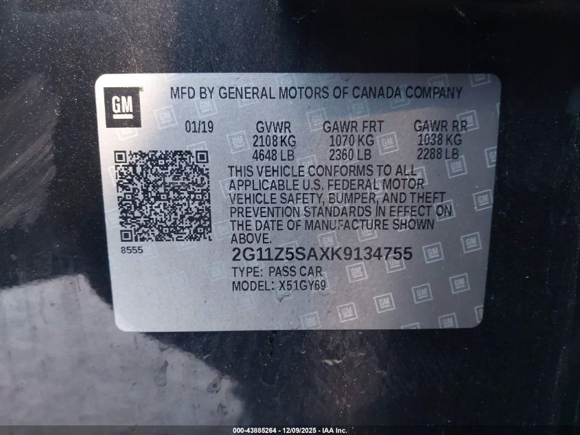2019 CHEVROLET IMPALA 2019 року Бензин, 2.5, Передній привід, vin - 2G11Z5SAXK9134755 з США
