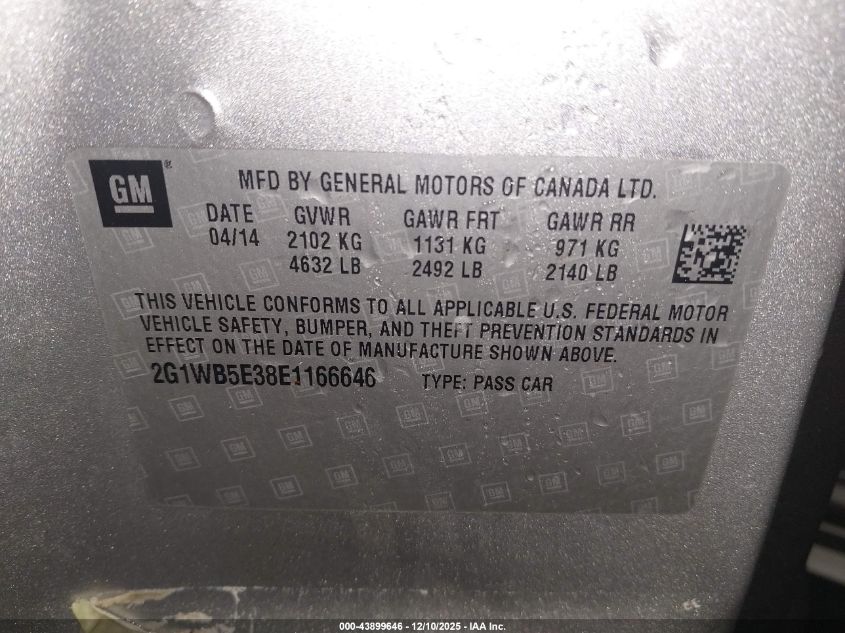 2014 CHEVROLET IMPALA 2014 року Бензин, 3.6, Передній привід, vin - 2G1WB5E38E1166646 з США
