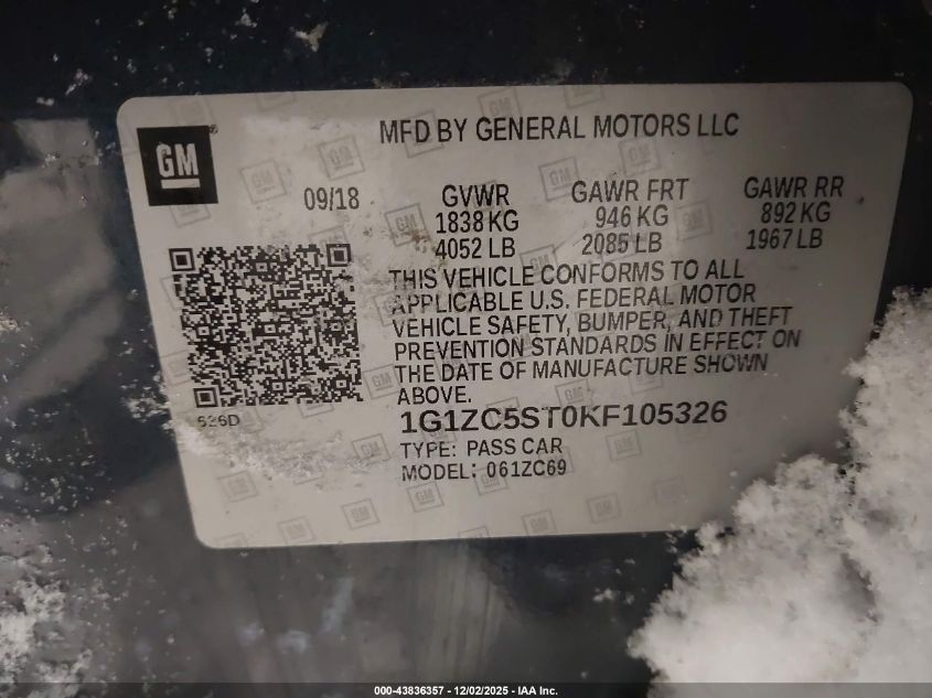 2019 CHEVROLET MALIBU 2019 року Бензин, 1.5, Передній привід, vin - 1G1ZC5ST0KF105326 з США