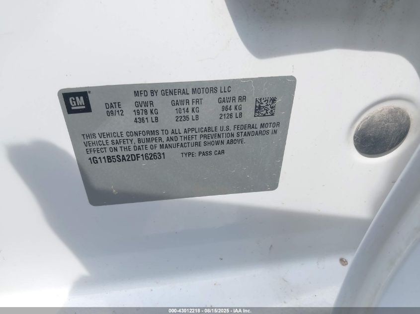 2013 CHEVROLET MALIBU 2013 року Бензин, 2.5, Передній привід, vin - 1G11B5SA2DF162631 з США