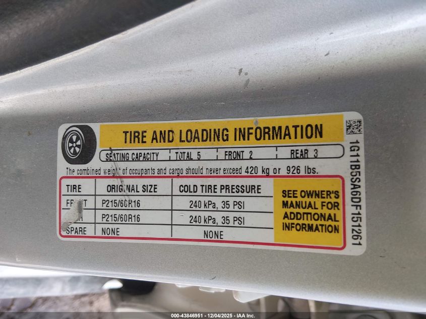 Колір СірийЦиліндри 4Привід Передній привідVIN 1G11B5SA6DF151261Стан Заводиться та їде (перевірено)Ушкодження Передня права AutoRIA